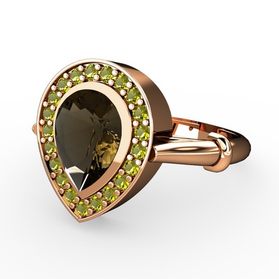 Dumanlı kuvars ve peridot 14 ayar rose altın yüzük