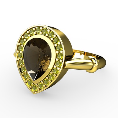 Dumanlı kuvars ve peridot 925 ayar altın kaplama gümüş yüzük
