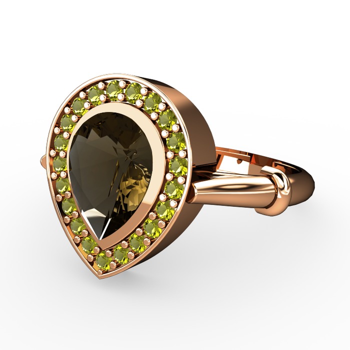 Dumanlı kuvars ve peridot 925 ayar rose altın kaplama gümüş yüzük