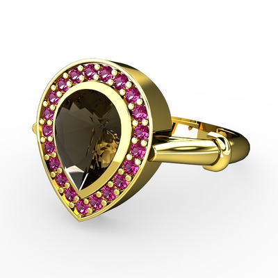 Dumanlı kuvars ve rodolit garnet 925 ayar altın kaplama gümüş yüzük