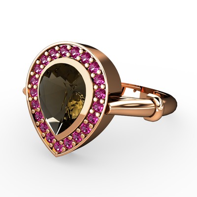 Dumanlı kuvars ve rodolit garnet 925 ayar rose altın kaplama gümüş yüzük