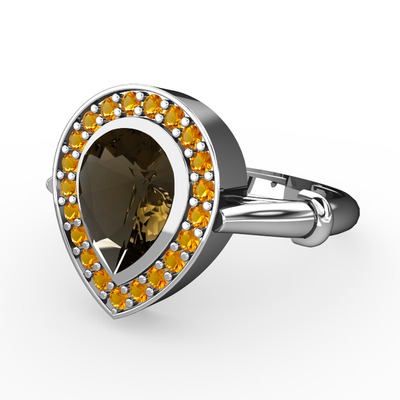 Dumanlı kuvars ve sitrin 14 ayar beyaz altın yüzük