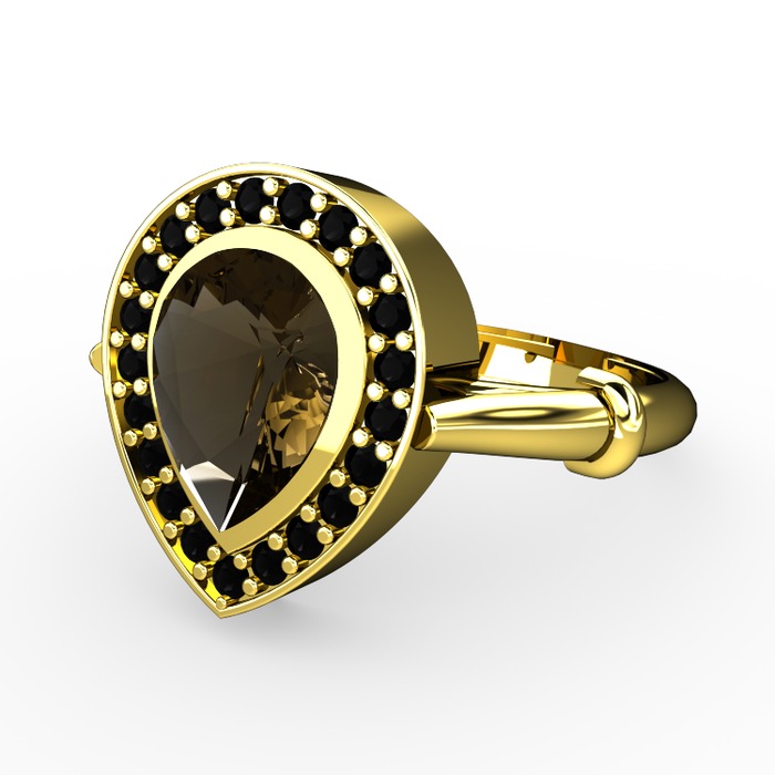 Dumanlı kuvars ve siyah zirkon 925 ayar altın kaplama gümüş yüzük