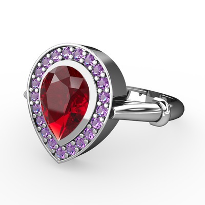 Garnet ve ametist 18 ayar beyaz altın yüzük