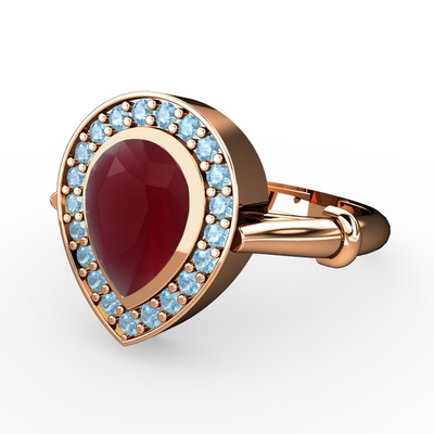 Kök yakut ve akuamarin 8 ayar rose altın yüzük