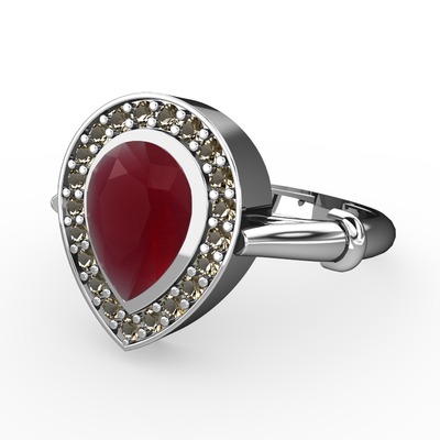 Kök yakut ve dumanlı kuvars 14 ayar beyaz altın yüzük