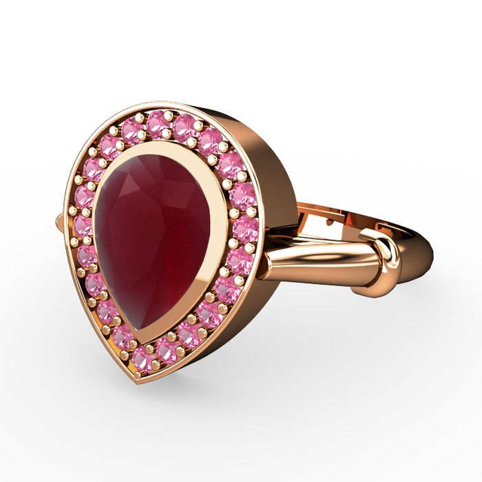 Kök yakut ve pembe kuvars 14 ayar rose altın yüzük