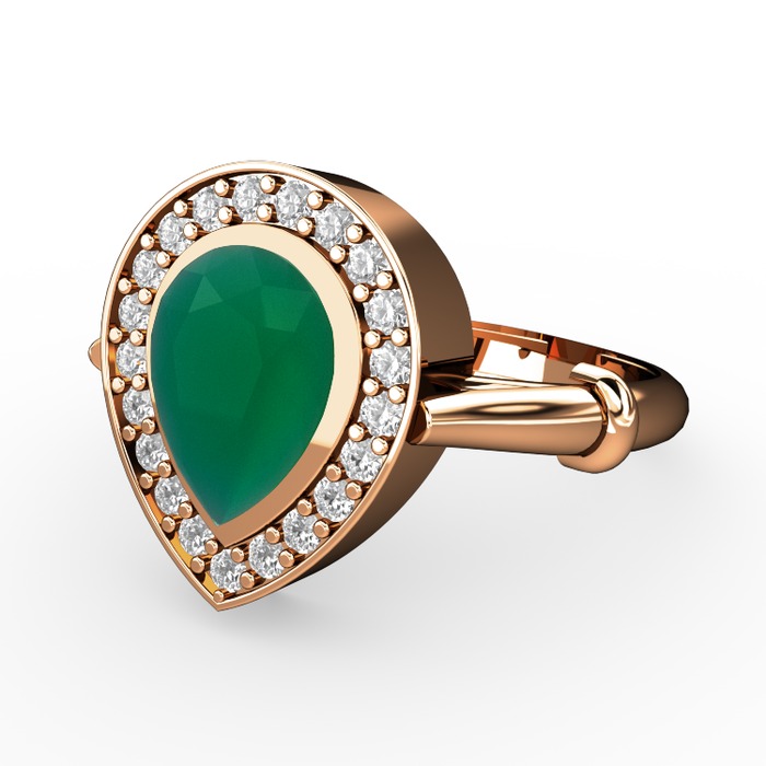 Kök zümrüt ve pırlanta 925 ayar rose altın kaplama gümüş yüzük (0.22 karat)
