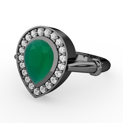 Kök zümrüt ve pırlanta 925 ayar siyah rodyum kaplama gümüş yüzük (0.22 karat)