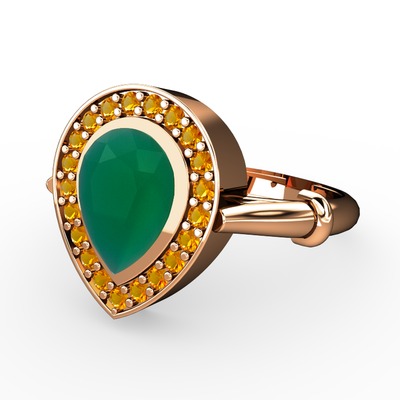 Kök zümrüt ve sitrin 18 ayar rose altın yüzük