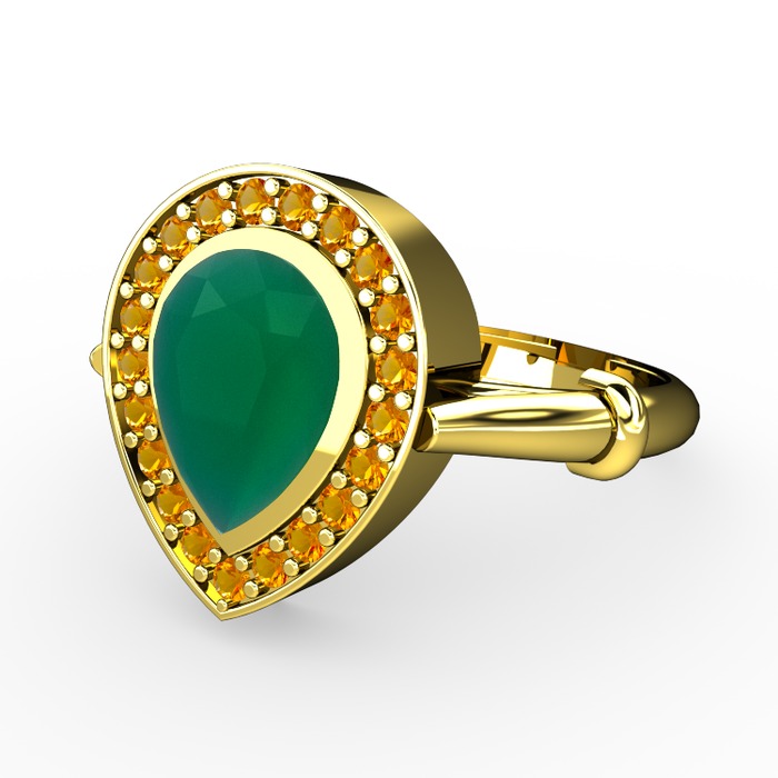 Kök zümrüt ve sitrin 8 ayar altın yüzük