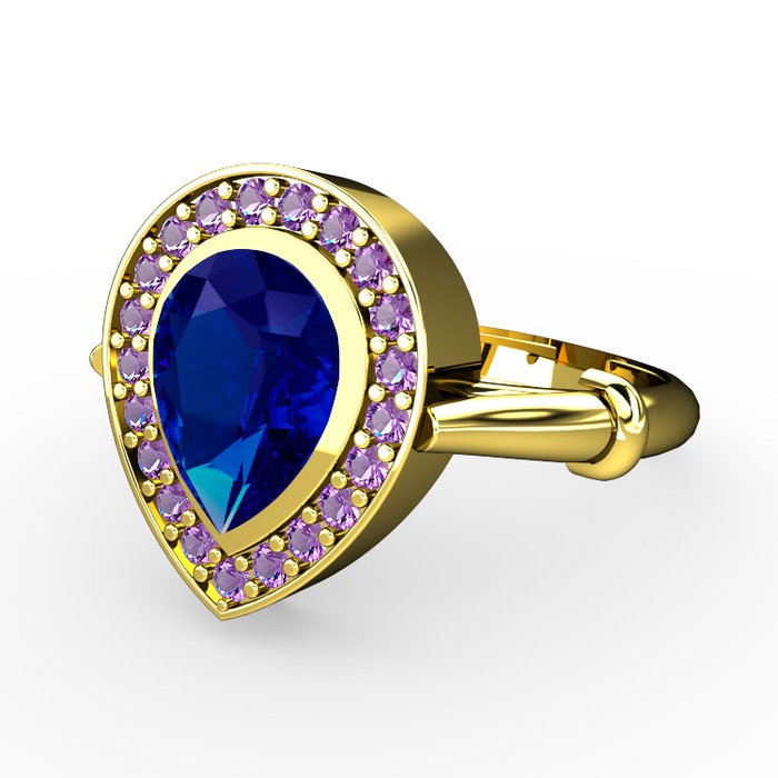Lab safir ve ametist 925 ayar altın kaplama gümüş yüzük