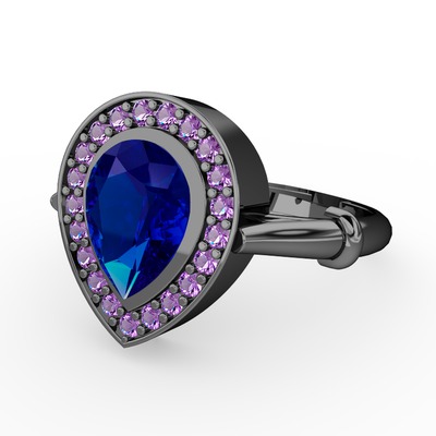 Lab safir ve ametist 925 ayar siyah rodyum kaplama gümüş yüzük