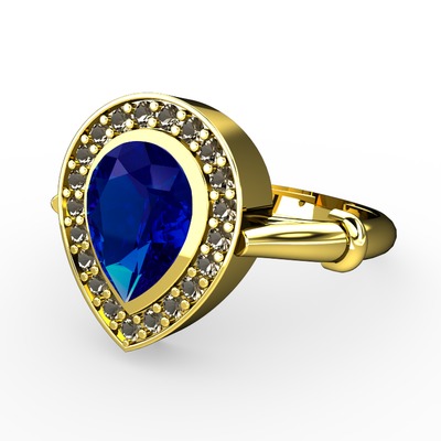 Lab safir ve dumanlı kuvars 925 ayar altın kaplama gümüş yüzük