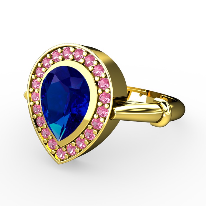 Lab safir ve pembe kuvars 8 ayar altın yüzük