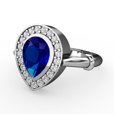 Lab safir ve pırlanta 14 ayar beyaz altın yüzük (0.22 karat)