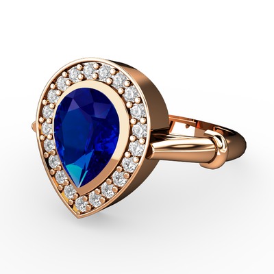 Lab safir ve pırlanta 925 ayar rose altın kaplama gümüş yüzük (0.22 karat)