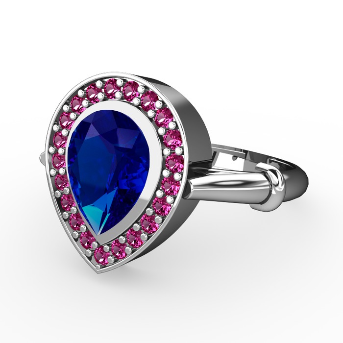 Lab safir ve rodolit garnet 14 ayar beyaz altın yüzük