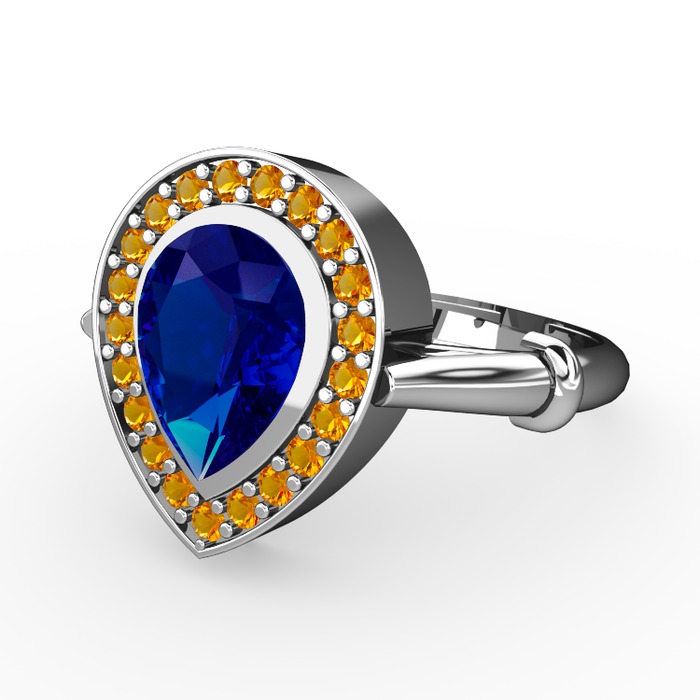 Lab safir ve sitrin 14 ayar beyaz altın yüzük