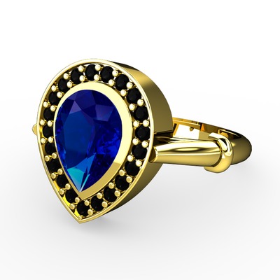 Lab safir ve siyah zirkon 925 ayar altın kaplama gümüş yüzük