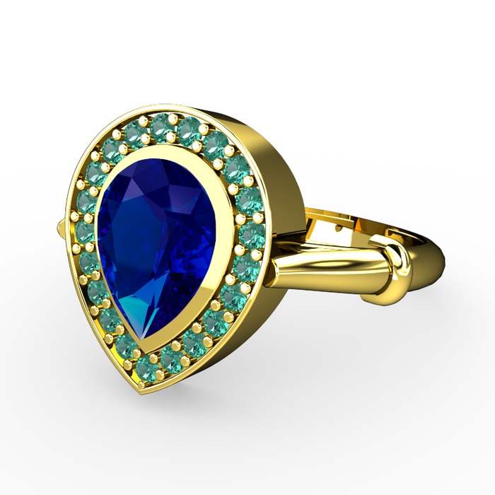 Lab safir ve yeşil kuvars 8 ayar altın yüzük