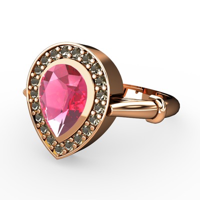 Pembe kuvars ve dumanlı kuvars 14 ayar rose altın yüzük