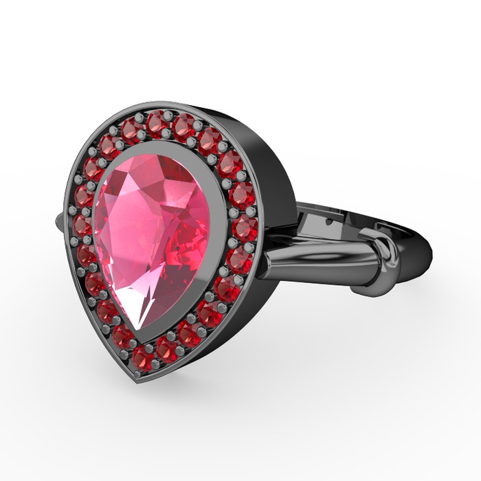 Pembe kuvars ve garnet 925 ayar siyah rodyum kaplama gümüş yüzük