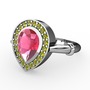 Pembe kuvars ve peridot 18 ayar beyaz altın yüzük