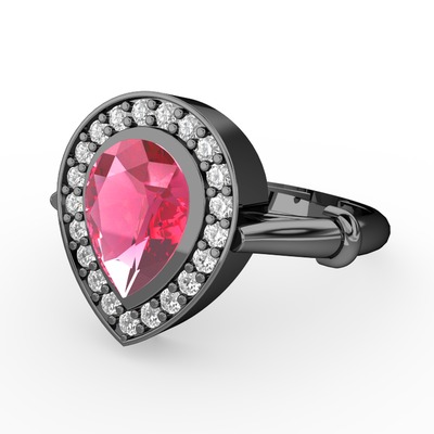 Pembe kuvars ve pırlanta 925 ayar siyah rodyum kaplama gümüş yüzük (0.22 karat)