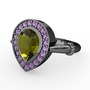 Peridot ve ametist 925 ayar siyah rodyum kaplama gümüş yüzük