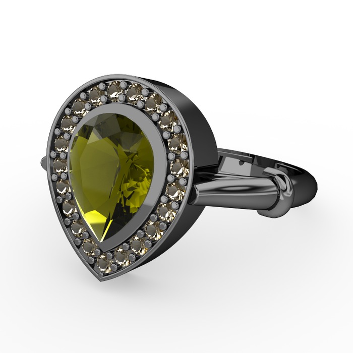 Peridot ve dumanlı kuvars 925 ayar siyah rodyum kaplama gümüş yüzük