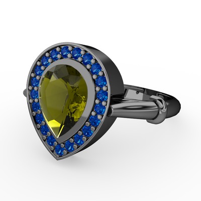 Peridot ve lab safir 925 ayar siyah rodyum kaplama gümüş yüzük