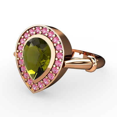 Peridot ve pembe kuvars 925 ayar rose altın kaplama gümüş yüzük