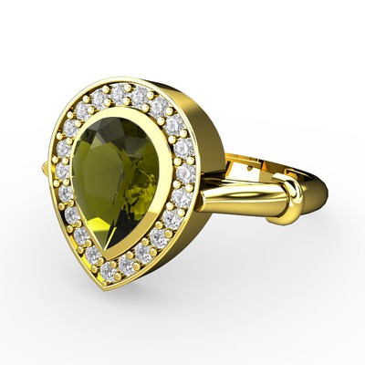 Peridot ve swarovski 14 ayar altın yüzük