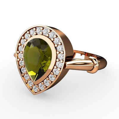Peridot ve swarovski 8 ayar rose altın yüzük