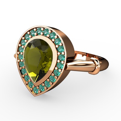 Peridot ve yeşil kuvars 18 ayar rose altın yüzük