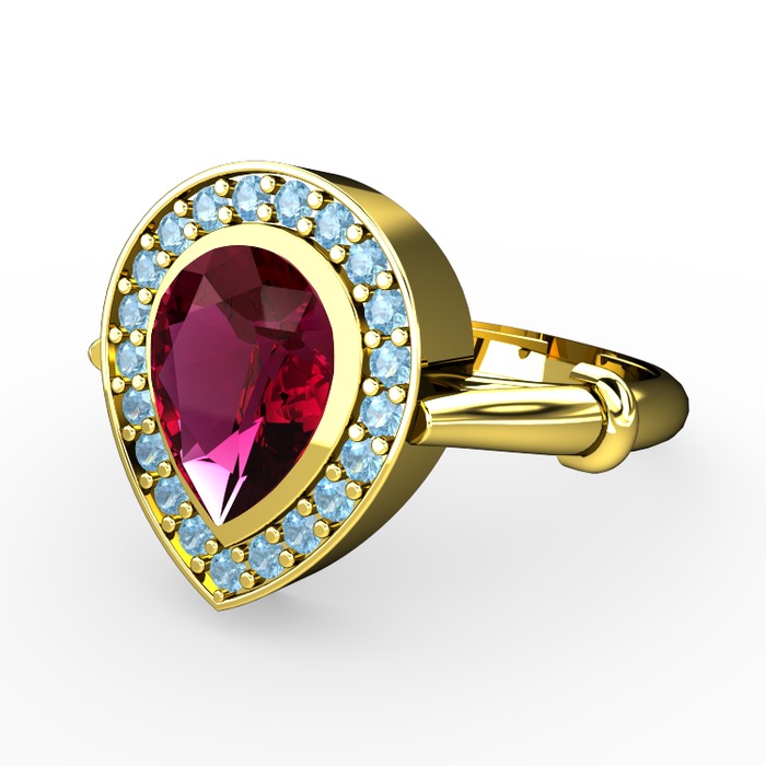 Rodolit garnet ve akuamarin 925 ayar altın kaplama gümüş yüzük