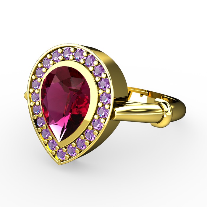 Rodolit garnet ve ametist 14 ayar altın yüzük