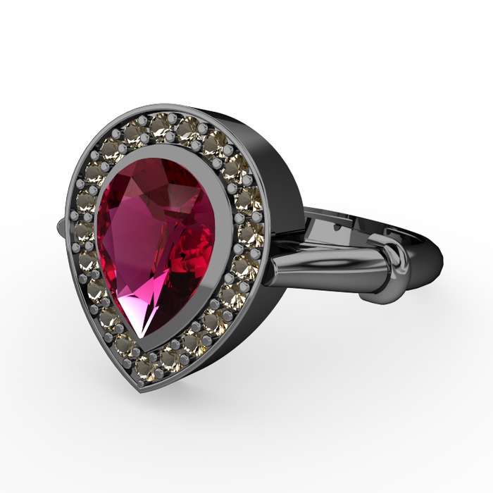Rodolit garnet ve dumanlı kuvars 925 ayar siyah rodyum kaplama gümüş yüzük