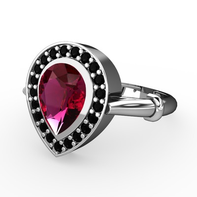 Rodolit garnet ve siyah zirkon 14 ayar beyaz altın yüzük