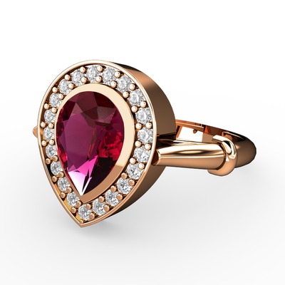 Rodolit garnet ve swarovski 14 ayar rose altın yüzük