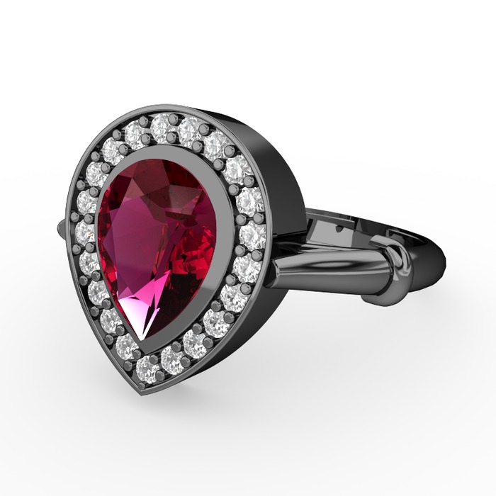 Rodolit garnet ve swarovski 925 ayar siyah rodyum kaplama gümüş yüzük