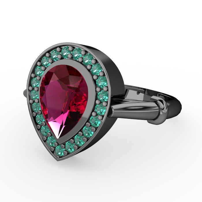 Rodolit garnet ve yeşil kuvars 925 ayar siyah rodyum kaplama gümüş yüzük