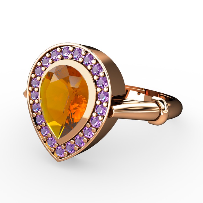 Sitrin ve ametist 14 ayar rose altın yüzük