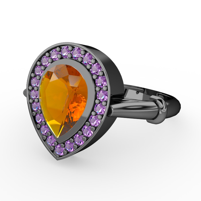 Sitrin ve ametist 925 ayar siyah rodyum kaplama gümüş yüzük
