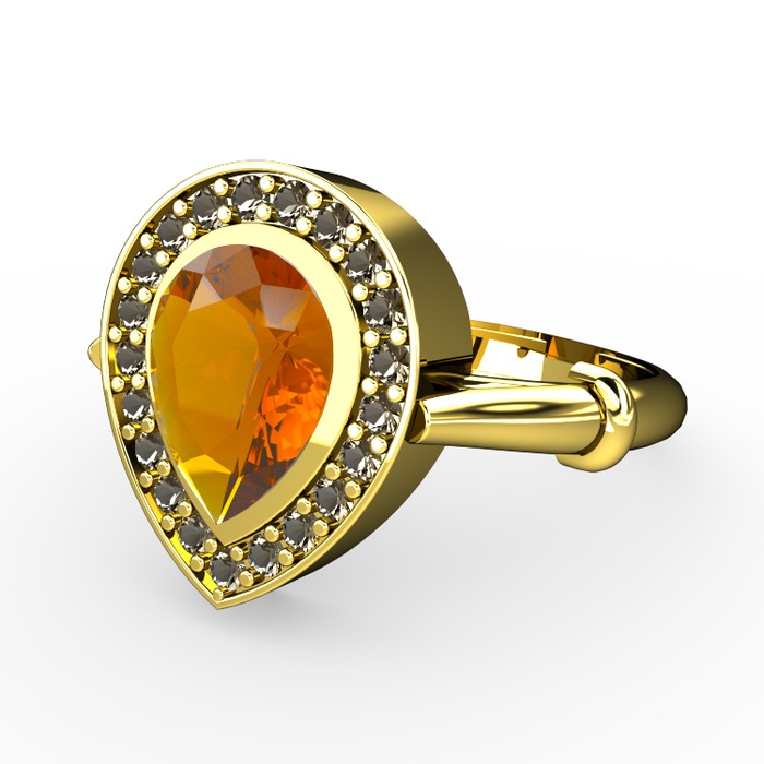Sitrin ve dumanlı kuvars 14 ayar altın yüzük