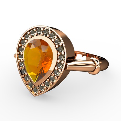 Sitrin ve dumanlı kuvars 14 ayar rose altın yüzük