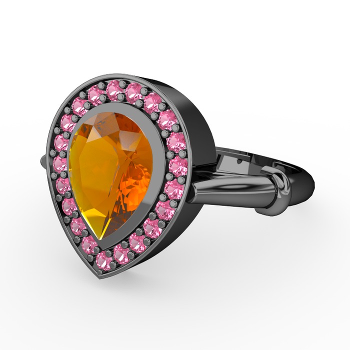 Sitrin ve pembe kuvars 925 ayar siyah rodyum kaplama gümüş yüzük
