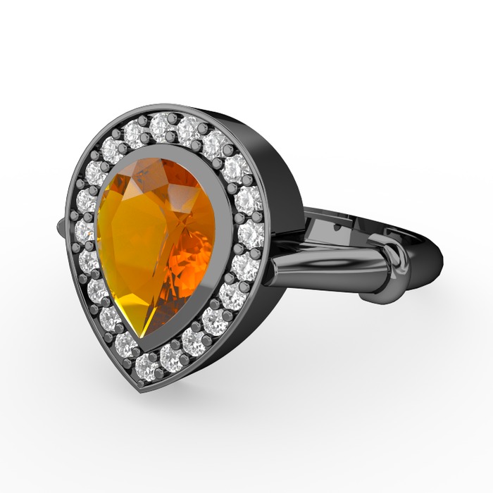 Sitrin ve pırlanta 925 ayar siyah rodyum kaplama gümüş yüzük (0.22 karat)