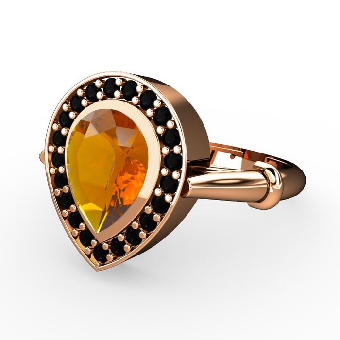 Sitrin ve siyah zirkon 14 ayar rose altın yüzük